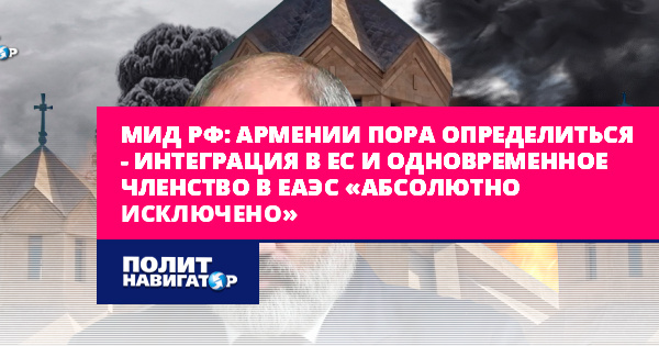 МИД РФ: Армении пора определиться – интеграция в ЕС и одновременное членство в ЕАЭС «абсолютно исключено»